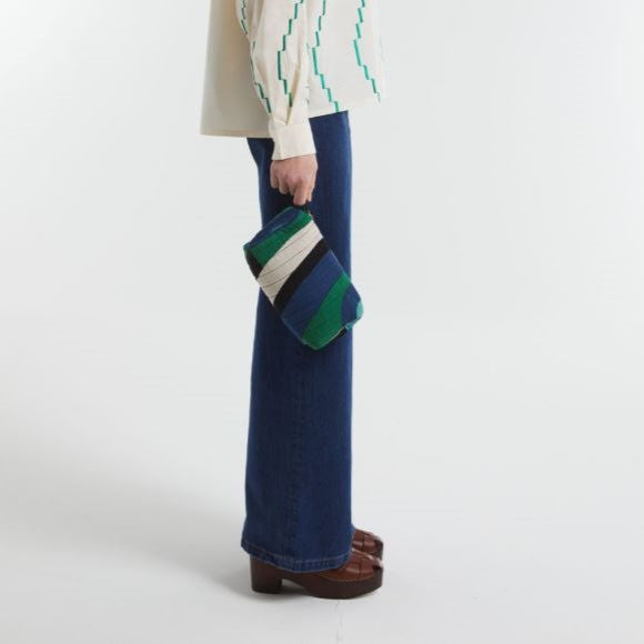 POCHETTE ELBA VELOURS BLEU VERT