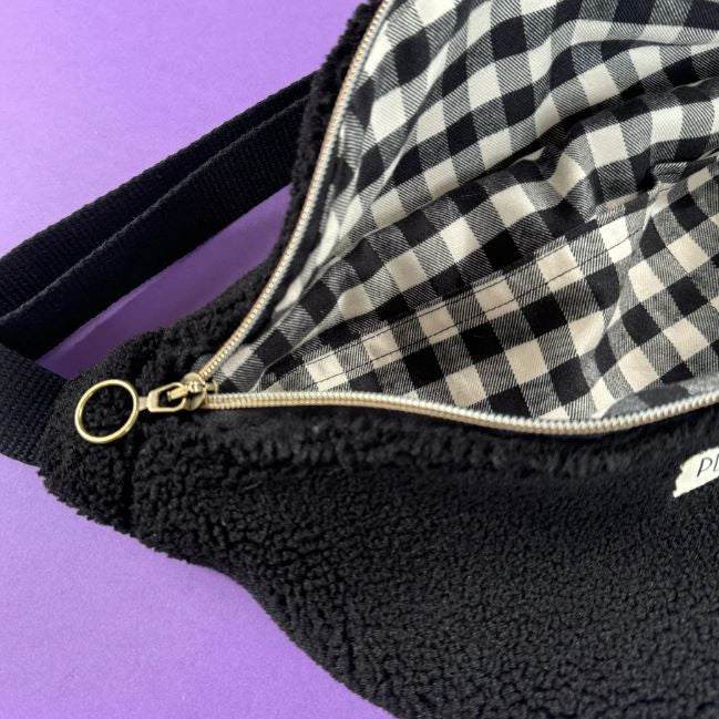 La banane en moumoute noire, vous nous l'avez beaucoup demandé, la voici ! Classe est douceur dans ce sac banane . On adore sa doublure en vichy noir qui en font un très bon intemporel !