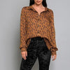 Chemise coupe droite à motifs léopard avec manches longues et droites