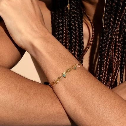 Il est orné de 7 perles dont 1 Agate de 0,4 cm, 1 Émeraude de 0,4 cm,