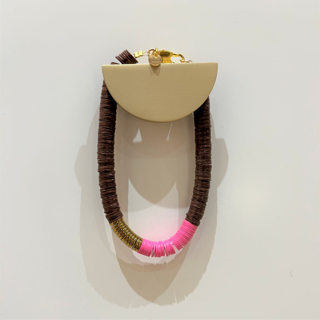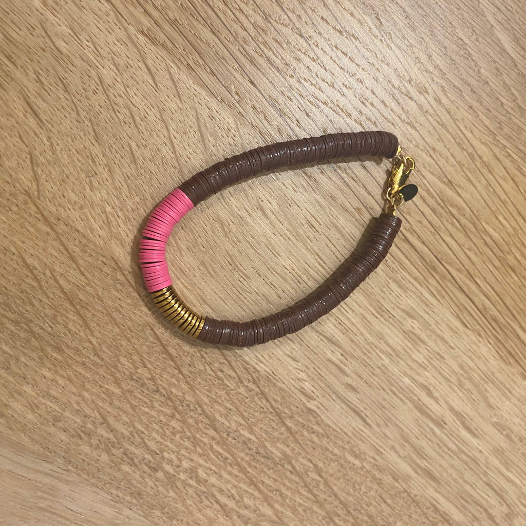 Bracelet en perles de vinyle recyclé du Ghana et de perles en Hématite 8mm . Il est cumulable avec d'autres bijoux en perles de la marque! D'une longueur de 19 cm.