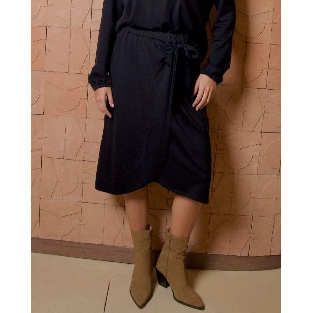 La jupe SIERRA noire est fabriquée dans un tissu composé de 57% modal, 25% coton, 16% élasthanne et 4% cachemire.