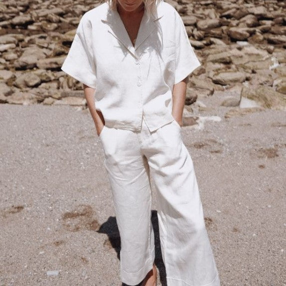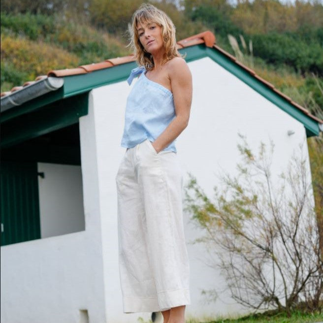Confectionné en lin, Matelot séduit par sa coupe fluide et structurée. Sa taille bien dessinée et ses poches discrètes offrent confort et praticité au quotidien. Des ourlets larges et un bouton en nacre viennent souligner son style affirmé. Une pièce facile à porter, pensée pour suivre tous vos mouvements, du matin au soir.