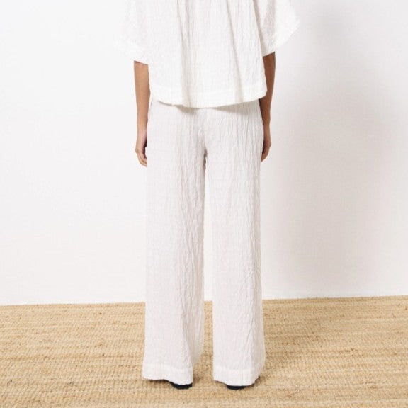Minimaliste et ultra confortable, ce pantalon en coton gaufré est une pièce facile à adopter au quotidien. Sa coupe droite alliée à un tissu fluide 100 % coton en fait un allié parfait pour les journées décontractées, tout en restant élégant. L’élastique à la taille assure un ajustement confortable, et les deux poches apportent une touche pratique.