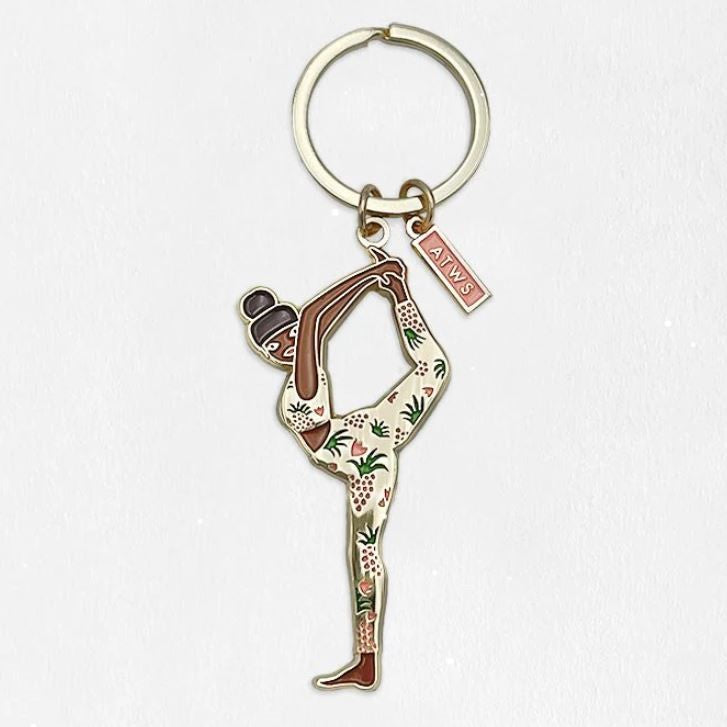 Adoptez la tranquillité et l'équilibre avec le porte-clé Yoga. Conçu en émail avec une finition en émail doré, ce porte-clé est l'accessoire parfait pour les amateurs de yoga et ceux qui recherchent la paix dans leur quotidien. Une touche de calme et de style à vos clés ou votre sac. 🧘♀️