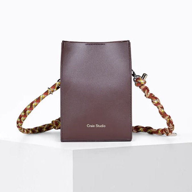 Le sac Essence en cuir Choco allie simplicité et élégance, avec sa bandoulière créative en mélange de corde d'escalade.