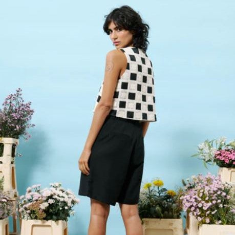 Découvrez notre top en crochet sans manches, au style court et élégant.Confectionné dans un tissu exclusif FRNCH, il se ferme par une rangée de boutons sur toute la longueur, pour un look à la fois chic et décontracté.