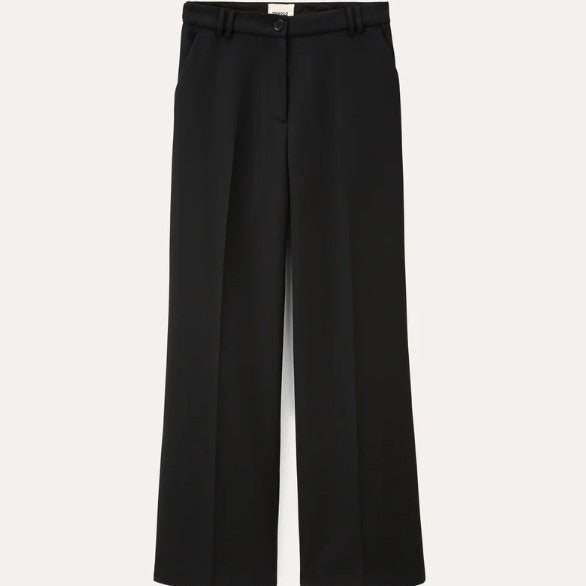 Le pantalon Gilia se distingue par sa coupe droite et évasée en bas de jambe, alliant élégance et confort. Confectionné dans un twill de laine tissé au Portugal, il est doté de poches à l’italienne, de pattes de serrage à la taille et de boutons en ivoire végétal, avec une doublure de poches en coton biologique.