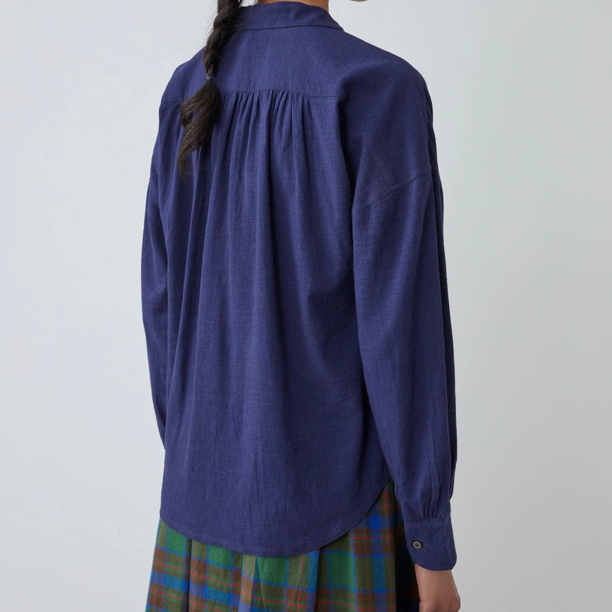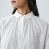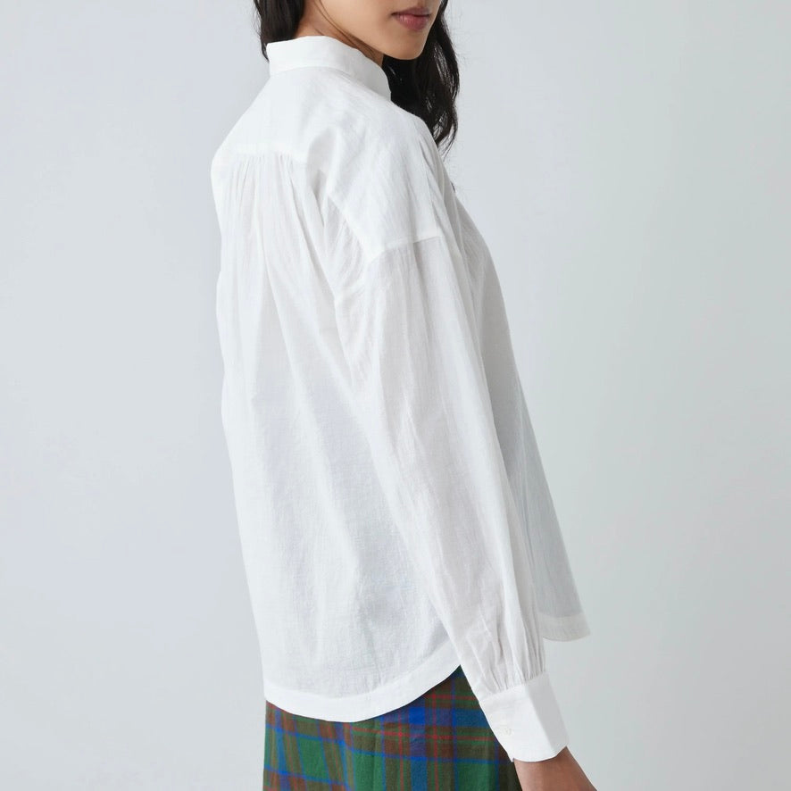 Première chemise à col anglais du vestiaire Moismont, la blouse Kate N°810 incarne une élégance naturelle et décontractée. Avec ses épaules tombantes et ses petites fronces délicates à l’encolure, elle dessine une silhouette douce et fluide. Confectionnée en 100 % coton, elle se distingue par sa coupe droite légèrement ample et une broderie "M" contrastante, posée sur la poitrine. Un essentiel féminin, à porter seul ou sous une maille.