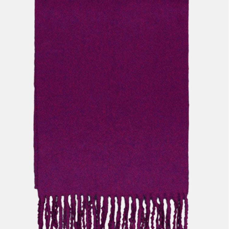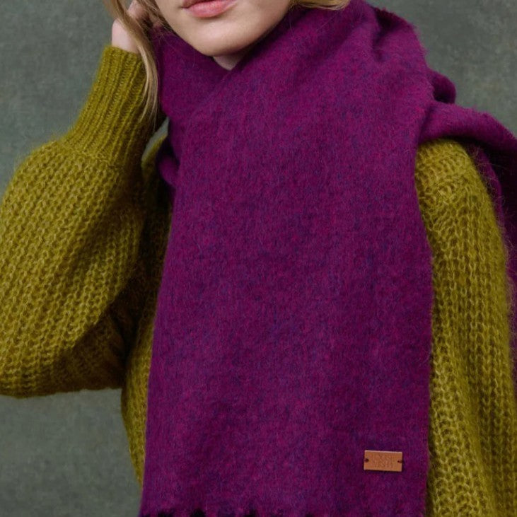 Écharpe douce et duveteuse au toucher moelleux. Son coloris chiné apporte de la profondeur et un effet texturé à la matière. Finition avec de longues franges torsadées pour un look élégant et décontracté. Détail signature : patch en cuir embossé, discret et raffiné. Idéale pour compléter vos tenues d’hiver tout en vous gardant au chaud.