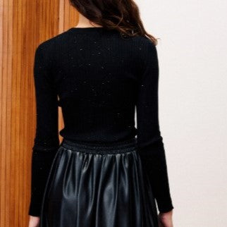 Alliez confort et élégance avec ce pull à paillettes en laine. Sa coupe près du corps souligne la silhouette tout en offrant une maille douce et agréable à porter. Doté d’un col rond et de manches longues, il se distingue par ses finitions scintillantes qui apportent une touche lumineuse à vos tenues, de jour comme de soir.