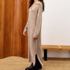 Robe longue polo au style élégant et décontracté. Confectionnée dans un mélange raffiné de laine et de mohair, elle offre chaleur, confort et douceur. Son col chemise apporte une touche de sophistication, tandis que sa coupe fluide souligne une allure moderne et féminine.