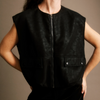 Gilet sans manches effet cuir noirPièce audacieuse et moderne, ce gilet revisite les codes du tailoring avec une touche contemporaine.