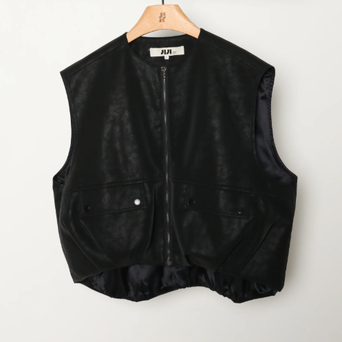 Un gilet effet cuir à porter seul pour une allure affirmée, ou superposé sur une chemise ou une robe pour un look mode et contrasté.