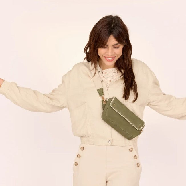 Véritable hybride entre la banane et le sac en cuir, le sac Emilie incarne la modernité. Elle conserve la praticité de la banane tout en adoptant un design plus chic, structuré et minimaliste. Son format, idéalement conçu, épouse parfaitement la silhouette sans l'alourdir. À portée de main, vous y avez vos clés, téléphone, cartes, papiers et même un rouge à lèvres, tous vos essentiels. En cuir recyclé, il est à la fois solide et résistant aux taches.