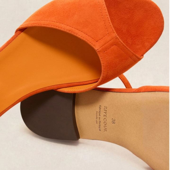 Confectionnées en cuir de chèvre velours suede 100 % provenant d'une tannerie espagnole, ces sandales élégantes présentent un bout en amande et une fermeture par boucle à ardillon rectangle finition or clair. La doublure ton sur ton en cuir de chèvre et la semelle jourdain en cuir 100 % assurent un confort optimal. Le contrefort est équipé d’une bride cheville, et une piqûre décorative orne la partie avant, apportant une touche raffinée. Avec un talon de 10 mm, elles allient légèreté et élégance. Fabriquées au Portugal dans le respect du savoir-faire traditionnel.