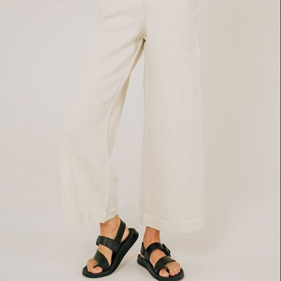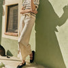 Dans une teinte douce comme un nuage, le pantalon couleur meringue mêle la fraîcheur du lin à la douceur du coton. Sa coupe large et droite effleure les jambes avec élégance, dessinant une silhouette fluide et décontractée. Léger, aéré, il évoque les après-midis ensoleillés et les escapades sans programme.
