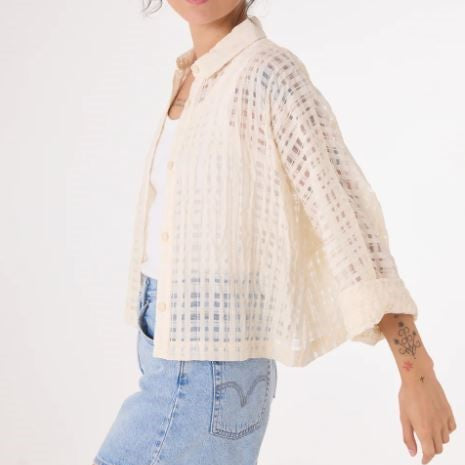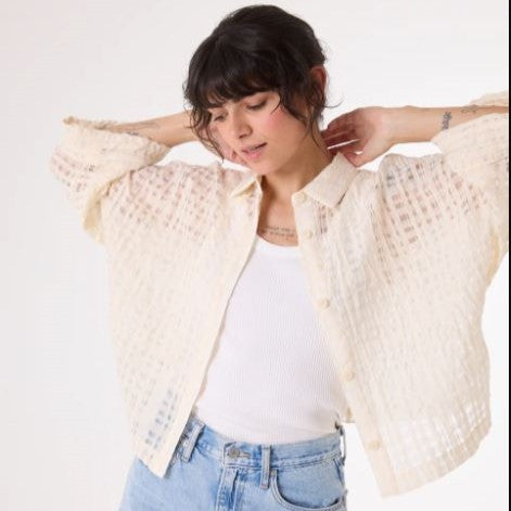 Avec sa coupe oversize et sa longueur raccourcie, cette chemise réinvente les classiques avec audace. Confectionnée en seersucker à carreaux, elle joue sur la texture et le motif pour une allure à la fois fraîche et structurée. Les manches longues, larges et souples, inspirées du kimono, apportent une touche de fluidité et d’originalité.