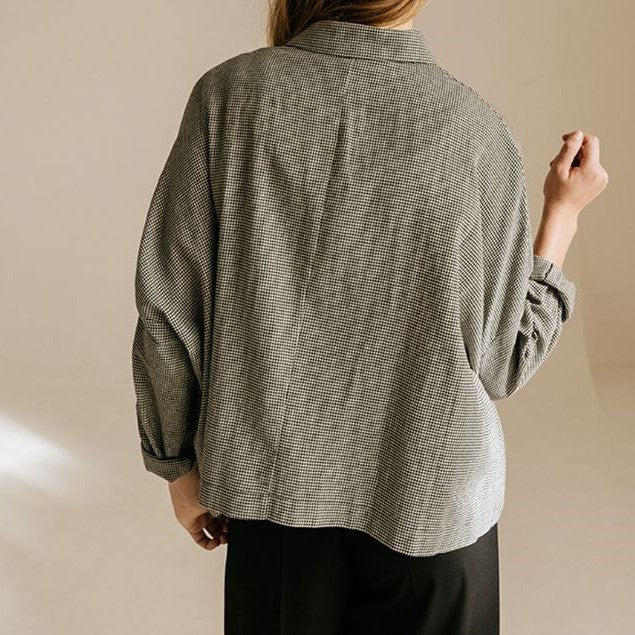 La Chemise WOOD est une blouse fluide et légère, confectionnée dans une mousseline de soie aérienne tissée en France.