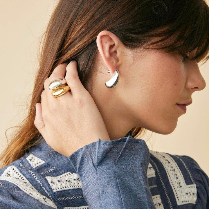 Apportez une touche de sophistication à votre quotidien avec la Bague Gladys Or et argent de Feeka. Ce jonc bombé au design minimaliste et à la finition brillante s'adapte à toutes les occasions, du bureau à vos soirées élégantes.