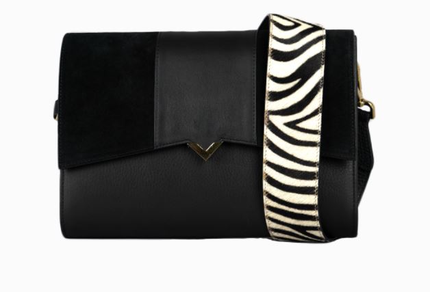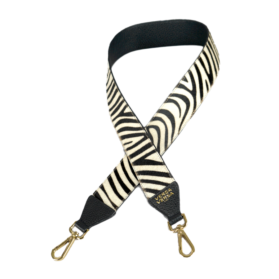 Bandoulière à motifs zébrés, tissée à la main, interchangeable et adaptable à tous vos sacs à main munis de petites boucles permettant de clipper et se déclipper les mousquetons. Elle est réversible: noir en cuir lisse d'un côté et zèbre à poils courts de l'autre! Elle est donc adaptable à vos tenues et envies. Son motif égaye les tenues d'hiver et s'associe facilement à des sacs plus classiques.