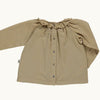 Blouse beige avec col à volants. Iconique et intemporelle blouse charme avec son col volant, avec boutons à placer à l'avant ou au dos! deux manières. Mixte.