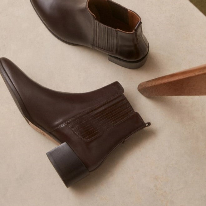 Valeur sûre de l’hiver, la bottine Chelsea 408 allie confort, féminité et versatilité. Montée sur un talon de 4 cm et dotée d’un bout pointu, elle se distingue par ses élastiques latéraux recouverts d’inserts en cuir, facilitant l’enfilage tout en ajoutant une touche élégante et décontractée.
