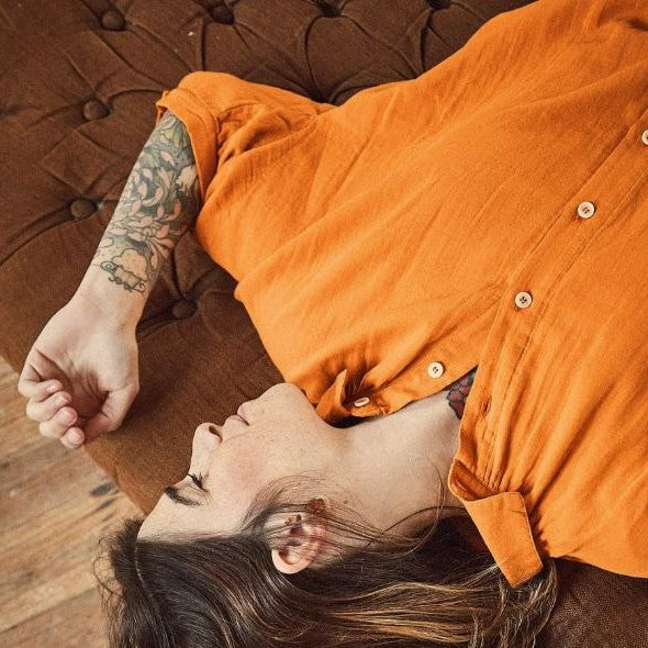 Chemise Neotine. Col, manches courtes et boutons sur l'avant. 100% coton issu de l'agriculture biologique.