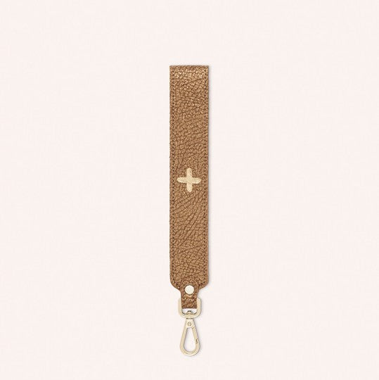 Dragonne cuir doublée à attacher sur une pochette Livrée avec anneau pour un usage porte-clés.
