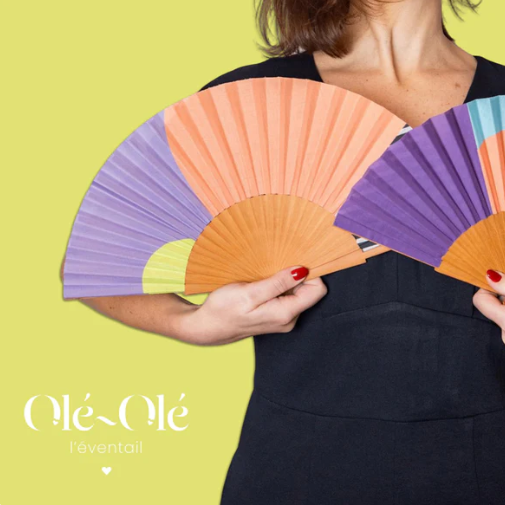Apporte une touche de peps à ton été avec l’éventail Olé~Olé, aux couleurs vives et au design graphique signature. Ses lignes noires et blanches lui donnent un look audacieux et ultra stylé. Fabriqué à la main en Espagne en 100 % bois de poirier, il s’ouvre avec élégance et devient vite un accessoire incontournable. Éco-responsable, sans vernis et imprimé avec des encres écologiques, il allie style et conscience. Livré dans un joli pochon en tissu et une boîte, il se glisse facilement dans ton sac pour un souffle de fraîcheur chic à tout moment. Dimensions : 23 cm fermé, 42 cm ouvert.