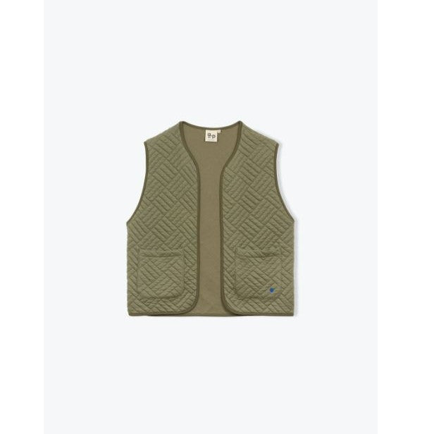 Gilet matelassé sans manche avec deux poches plaquées sur le côté.