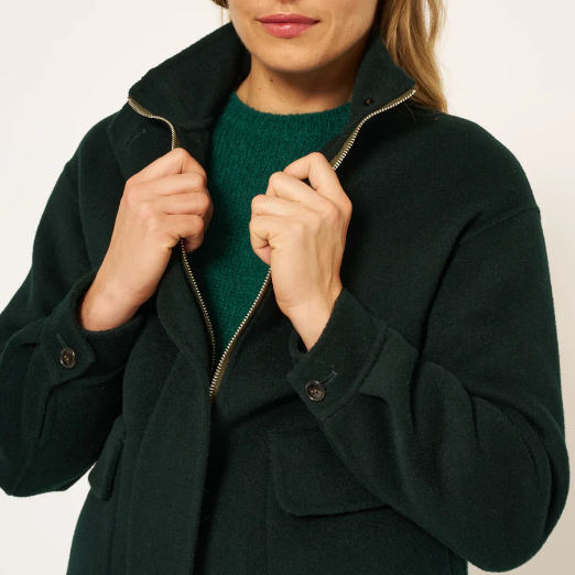 Combinant fonctionnalité et style, notre manteau court RIG en laine double face deviendra un incontournable de votre vestiaire hivernal pendant de nombreuses saisons. Grâce aux propriétés isolantes naturelles de la laine, il vous tiendra bien chaud tout en offrant une silhouette à la fois moderne et confortable. On aime sa couleur vert profond !