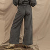Pantalon taille haute en velours côtelé fluide. Offrant une coupe ample élégante, il se distingue par ses boutons marbrés à la taille, sa ceinture élastique au dos, et ses pochettes avant pratiques. Le large revers sur le bas ajoute une touche sophistiquée.