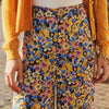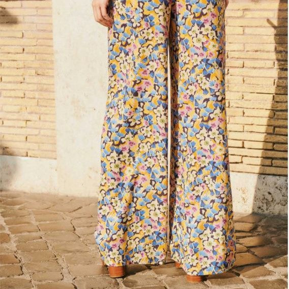 Avec sa coupe évasée sur toute la jambe et sa taille haute flatteuse, ce pantalon allie confort et élégance. Son imprimé fleuri coloré, où les teintes et les motifs se fondent harmonieusement, lui confère une touche moderne et sophistiquée. Doté de quatre poches – deux à l’avant et deux à l’arrière – il allie style et praticité.