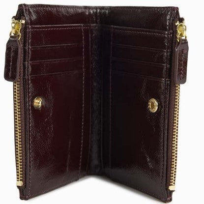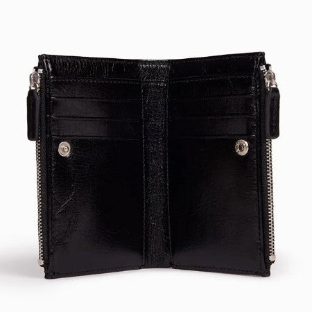 deux compartiments zippés pour votre monnaie et vos essentiels, un compartiment à billets, plusieurs poches plaquées et six emplacements pour cartes, dont votre carte d’identité. Sa fermeture à pression assure un maintien sûr et raffiné.
