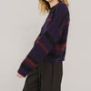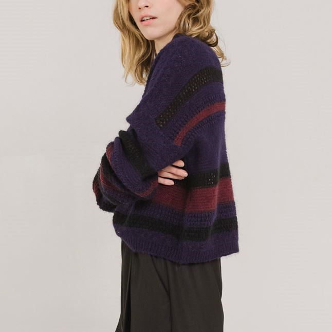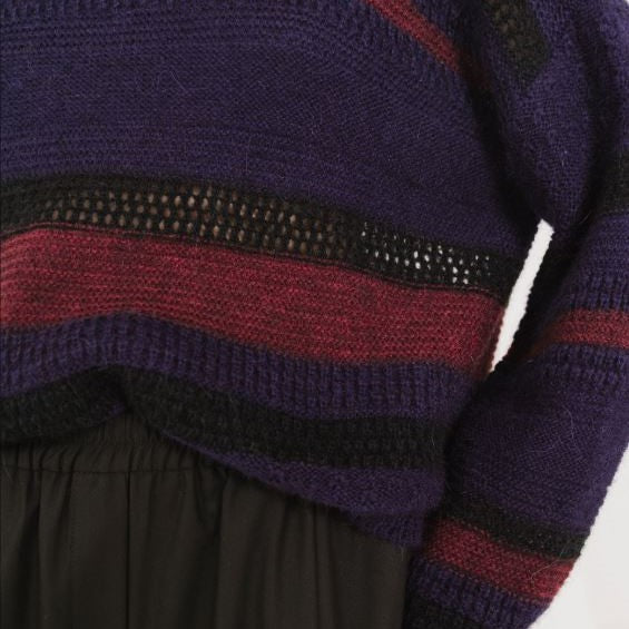 Pull en maille tricoté de différentes manières et points afin de créer une structure originale.