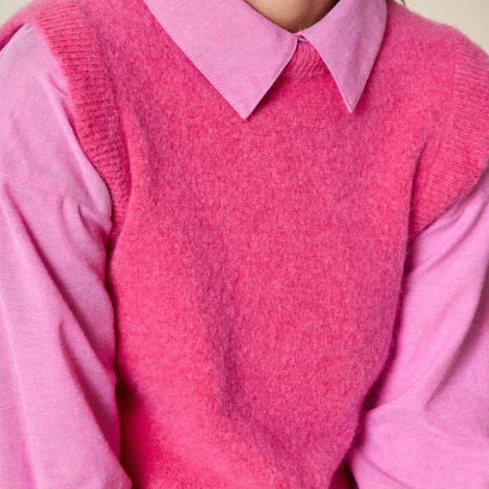 Pull sans manches en mohair, coupe droite, encolure ronde et finitions bords-côtes.