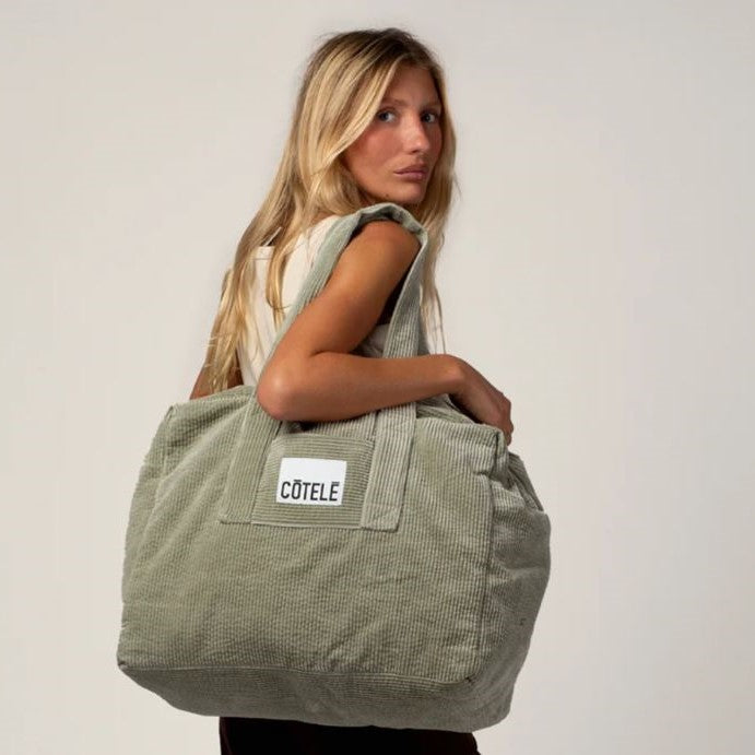 Sac Weekend en velours côtelé SAUGE. Idéal pour partir quelques jours. Composé de velours de coton 100% biologique tissé en France, doublure en toile de coton et poche intérieure.