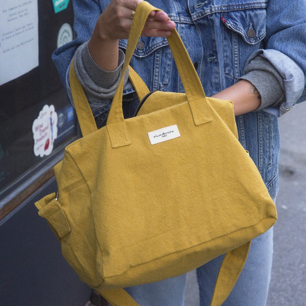 Le sac pour transporter toutes ses affaires du quotidien : ordinateur 13 pouces, papiers, porte feuille, maquillage… Il se porte aussi bien en bandoulière grâce à sa lanière en tissu réglable et à la main avec ses 2 anses.