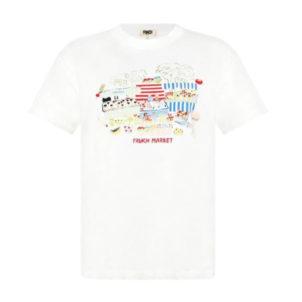 Craquez pour l’essentiel revisité avec style ! Ce t-shirt à manches courtes séduit par sa coupe ample et droite, idéale pour un look décontracté sans compromis sur l’allure. Son imprimé exclusif signé FRNCH apporte une touche de caractère unique à votre tenue, tout en restant facile à associer.