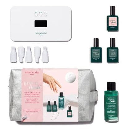 Idéale à glisser sous le sapin, elle contient tous les produits essentiels de la routine Green Flash™ pour une manucure impeccable qui dure jusqu’à 10 jours.